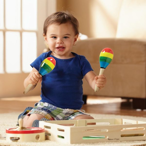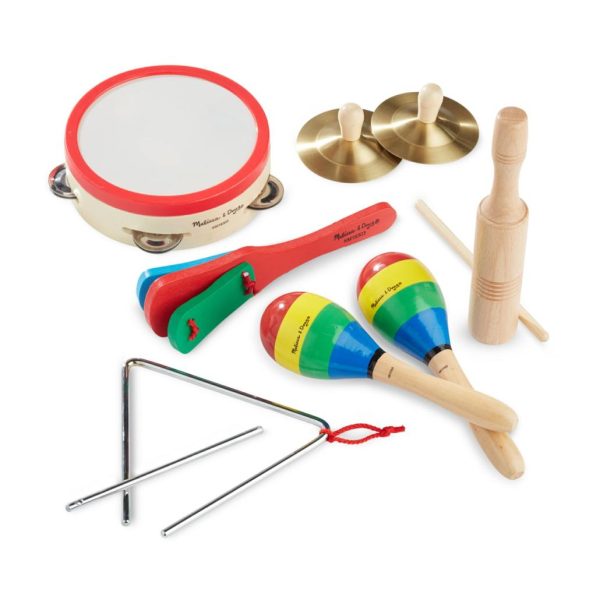 - 10-piece musical instrument set to get kids moving, grooving, and feeling the beat