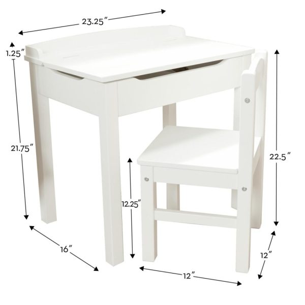 - Wooden child’s lift-top desk and chair