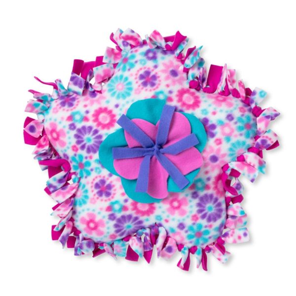 - Knot-together no-sew fleece decorative throw pillow craft kit with flower pattern and coordinating colors