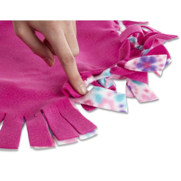 - Includes 2 fleece panels with slotted fringe for easy tying, stuffed pillow insert, 4 appliqué fleece flowers, 6 fleece strips for attaching appliqués, detailed instructions