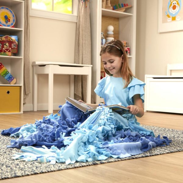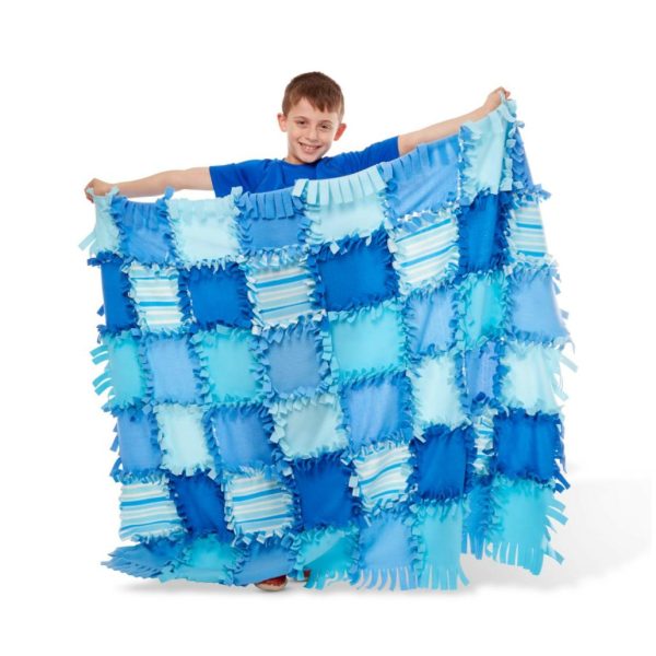 - Knot-together no-sew fleece quilt craft kit with striped pattern and coordinating colors