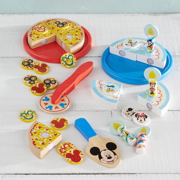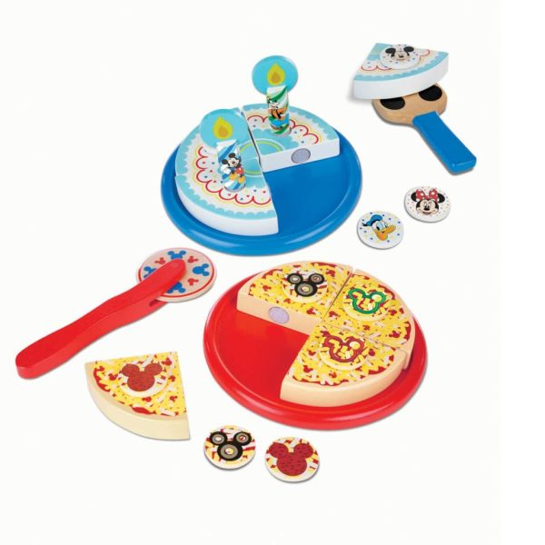 - Includes 4 pizza slices, 12 pizza toppings, 4 cake slices, 4 cake toppings, 4 candles, 2 plates, rolling pizza cutter, and cake server