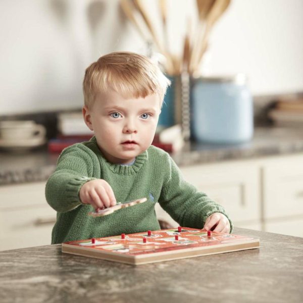 - 8-piece wooden peg puzzle featuring a durable wooden puzzle board built to last