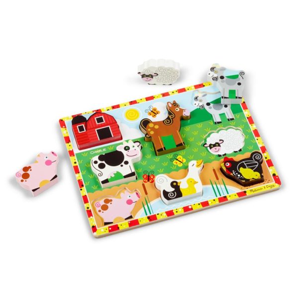 - 8-piece wooden puzzle featuring farm animals
