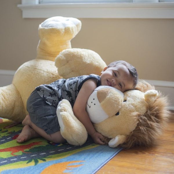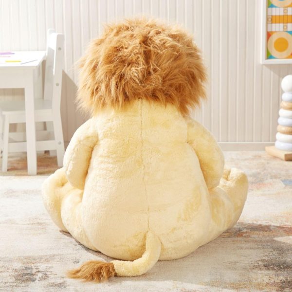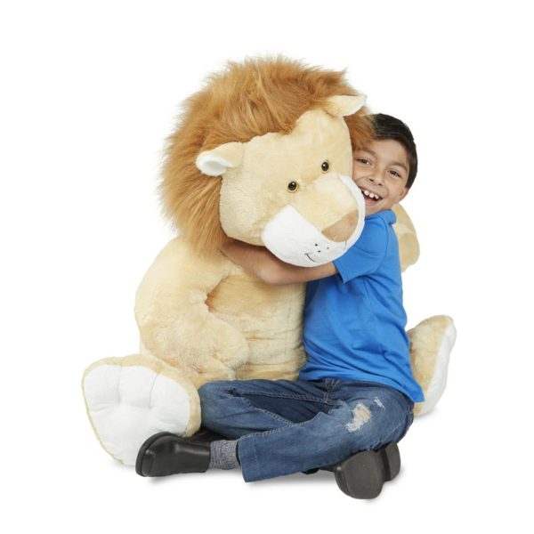 - Giant jumbo-sized stuffed plush light brown lion sits nearly 3 feet tall