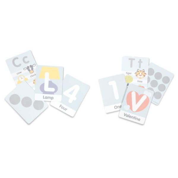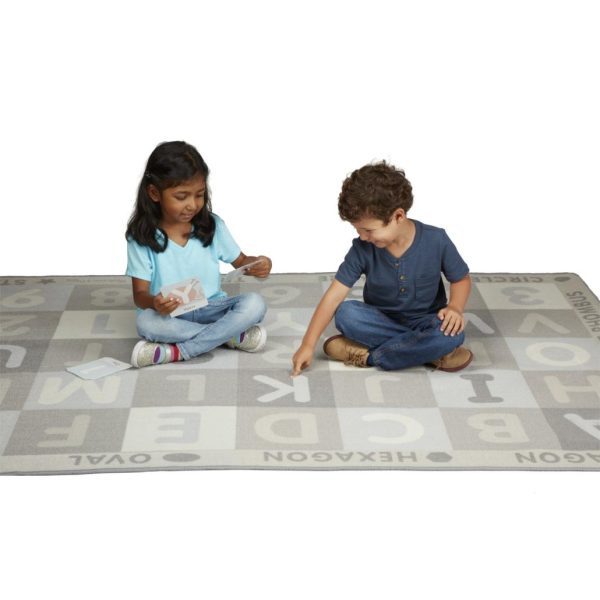 - Includes 36 double-sided game cards to match to letters, numbers, and shapes on the rug