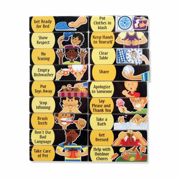 - 90 magnets include behaviors (Clean Room, Set Table, No Teasing) and rewards (Well Done!, Excellent!, You’re a Winner!)