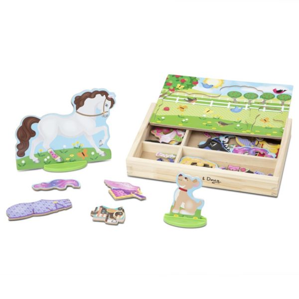 - Engaging wooden magnetic show horse and playful dog figures ready to style with coordinating mix-and-match outfits