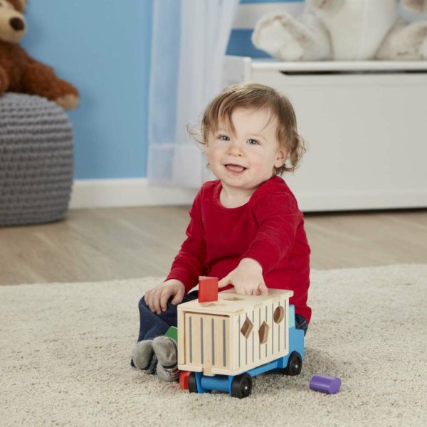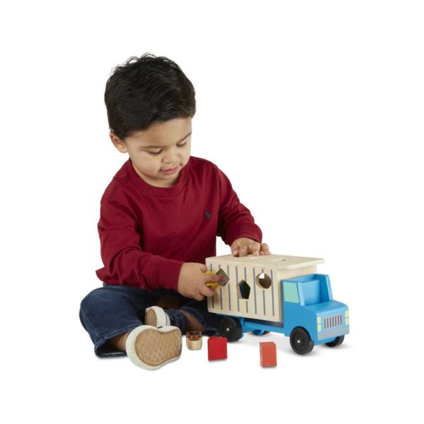 - Innovative 2-in-1 wooden dump truck and shape sorting activity center
