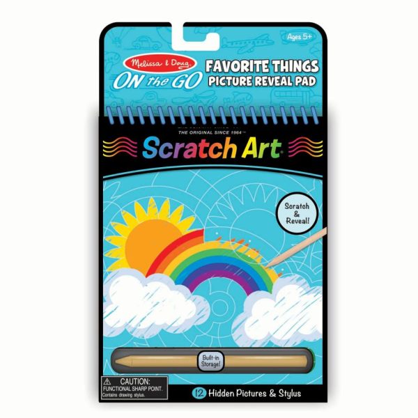 - Convenient spiral-bound pad includes 12 exciting hidden-picture Scratch Art pages featuring Favorite Things theme