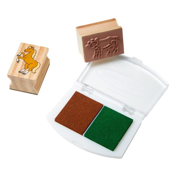 - Includes 20 stamps, 5 colored pencils, durable 2-color stamp pad, and wooden storage tray.